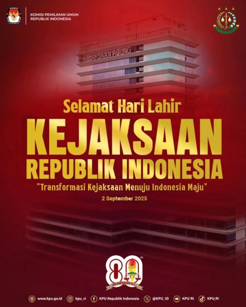 #Repost @kpu_ri #TemanPemilih, KPU mengucapkan selamat hari lahir Kejaksaan Republik Indonesia ke 80 Tahun. Dengan semangat transformasi, mari kita songsong Indonesia yang semakin maju dan b
