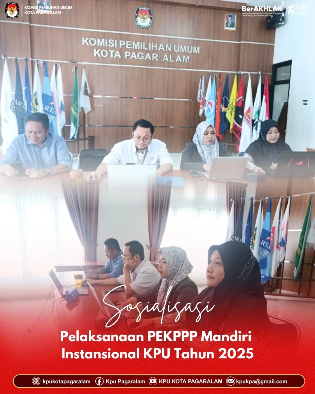 KPU Kota Pagar Alam mengikuti Sosialisasi Pelaksanaan Penyelenggaraan Pelayanan Publik (PEKPPP) Mandiri Instansional KPU Tahun 2025, yang dihadiri oleh Kasubbag Perencanaan Data dan Informasi