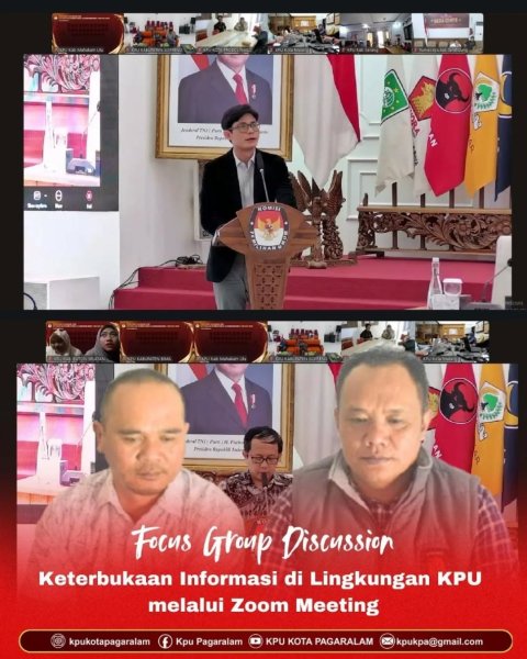 KPU Kota Pagar Alam mengikuti Focus Group Discussion (FGD) Keterbukaan Informasi di Lingkungan KPU secara daring melalui Zoom Meeting. Kegiatan ini menjadi langkah penting dalam mewujudkan transparansi dan akuntabilitas penyelenggaraan pemilu.